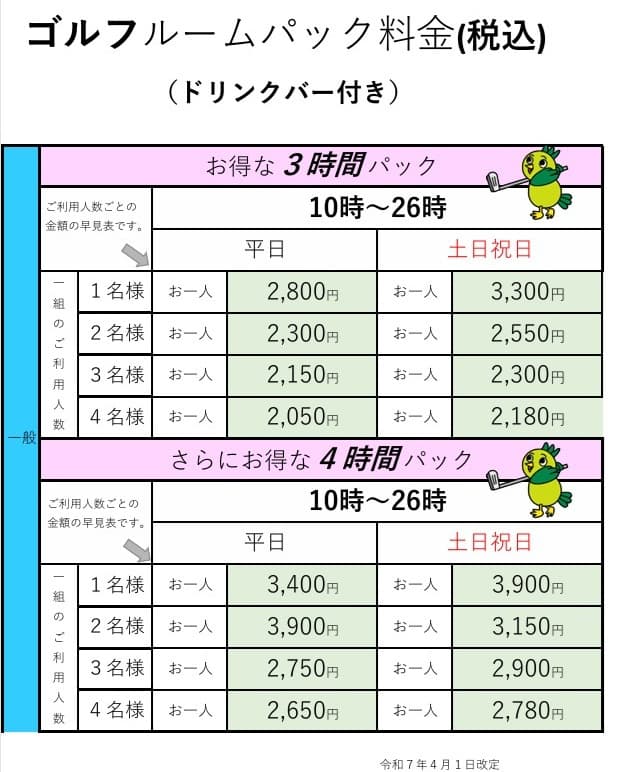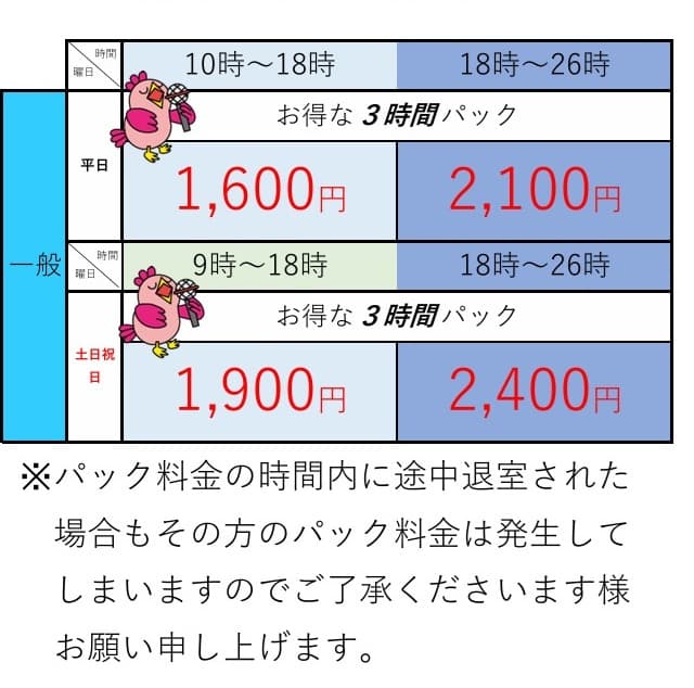 ※ゴールデンウィーク・お盆期間・年末年始などの大型連休などは料金が異なる場合がございます。