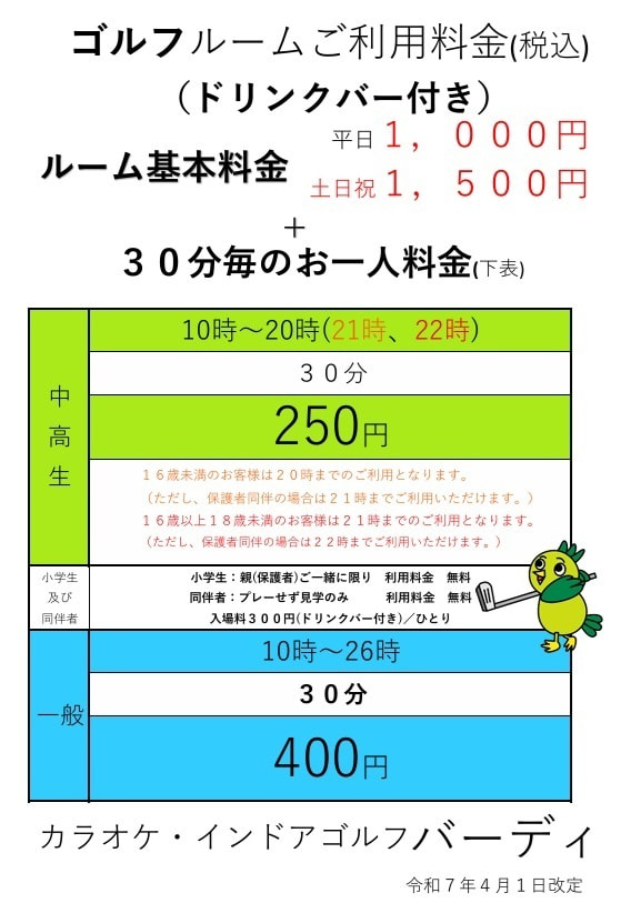 打席は人工芝のため、滑りやすいゴルフ用のスパイクシューズよりも運動靴でのご利用をお勧めいたします。